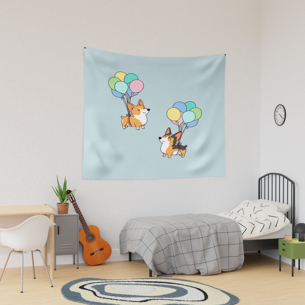 Corgi Balloon Tapestry