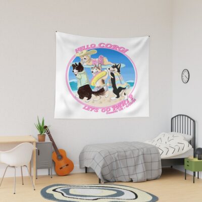 Hello Corgi Let S Go Party Tapestry